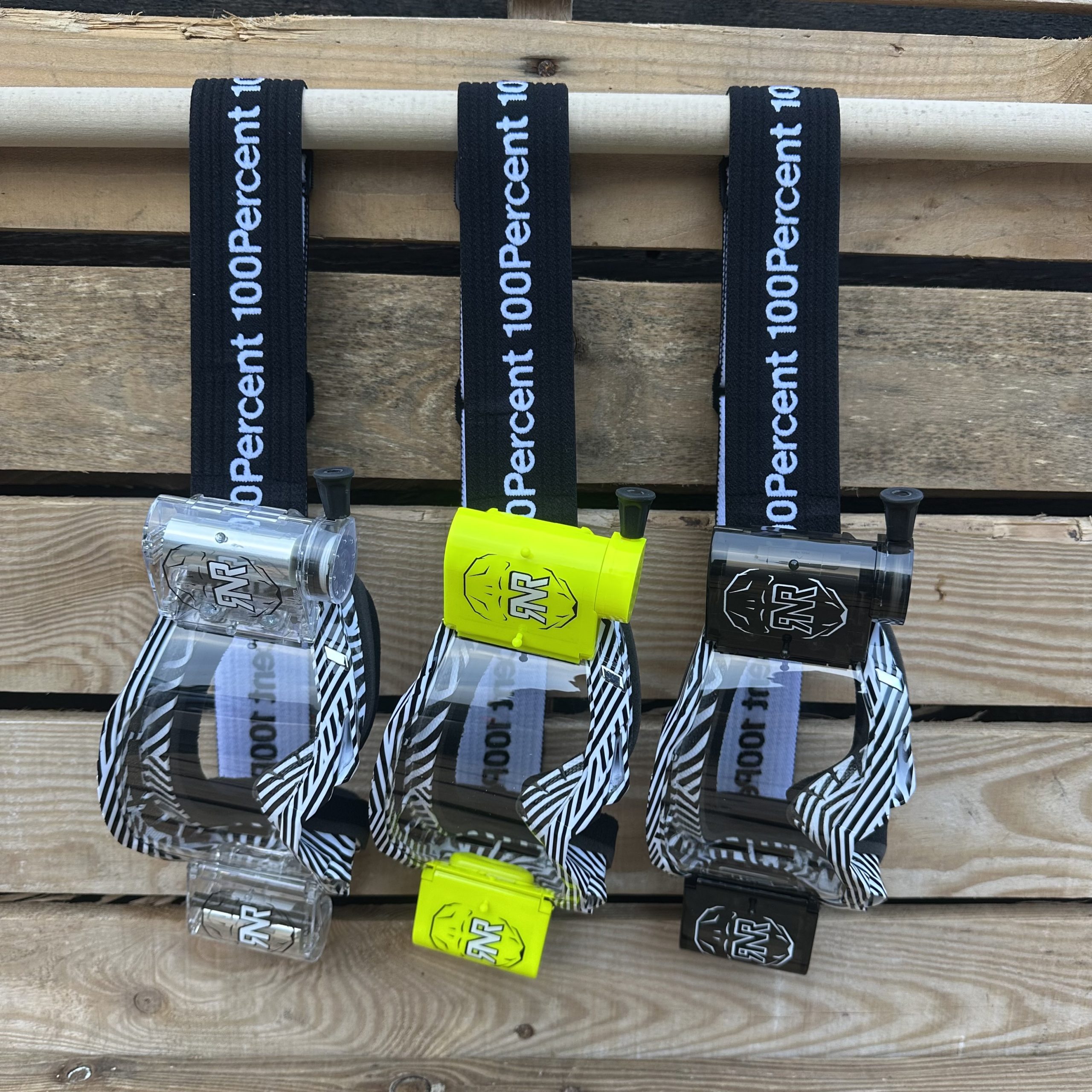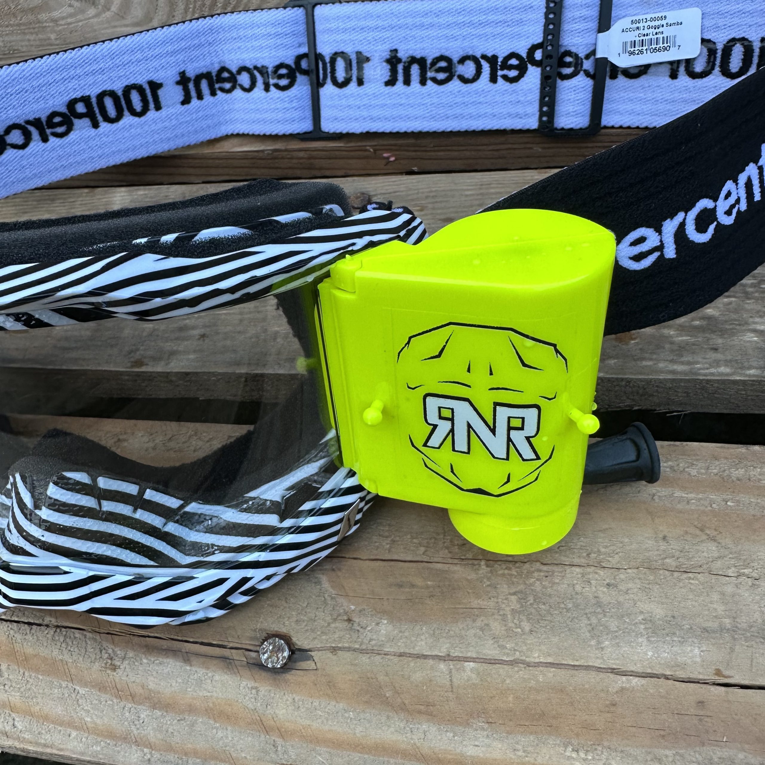 The latest 100% Accuri 2 motocross goggles fully loaded with RNR 48mm wvw roll-off system.