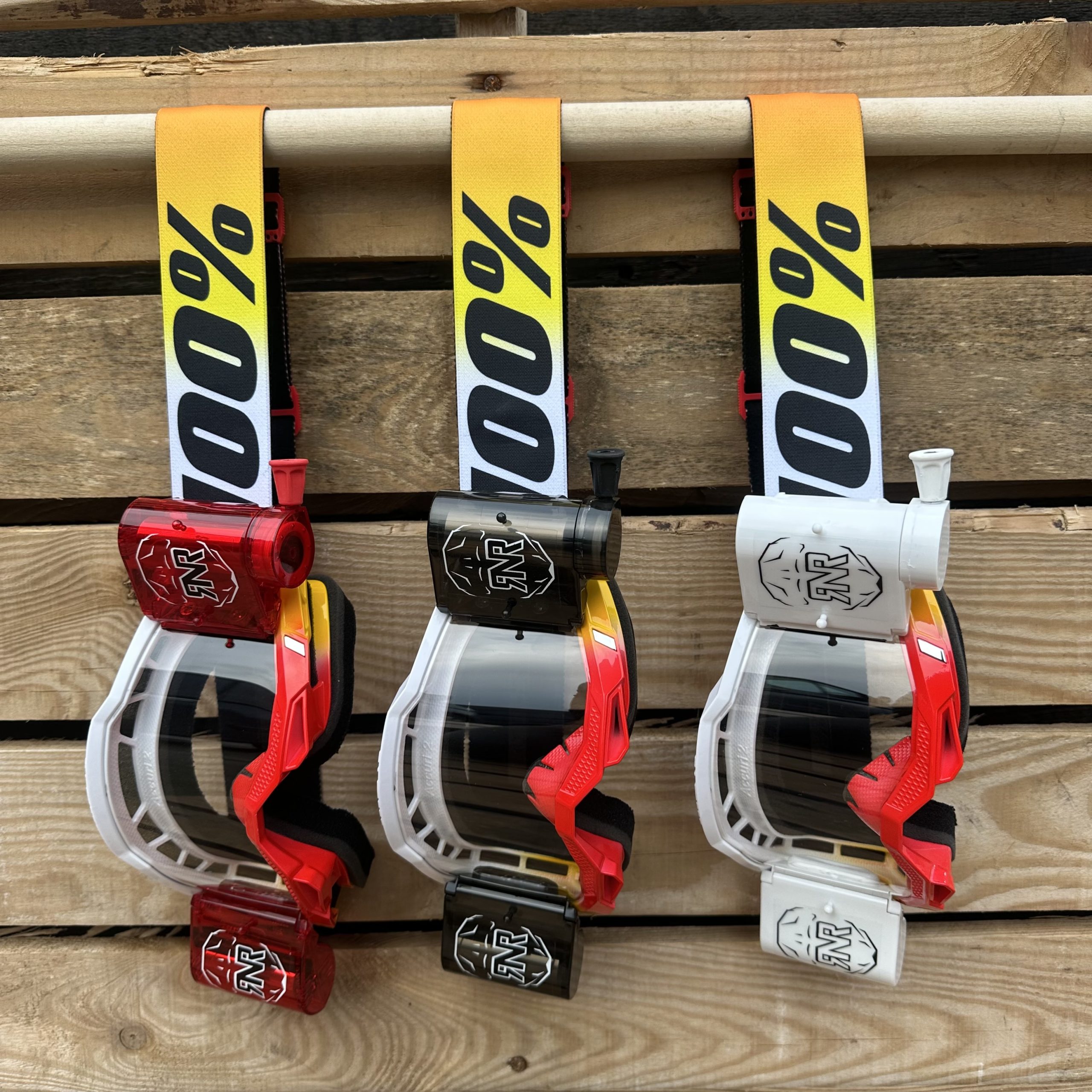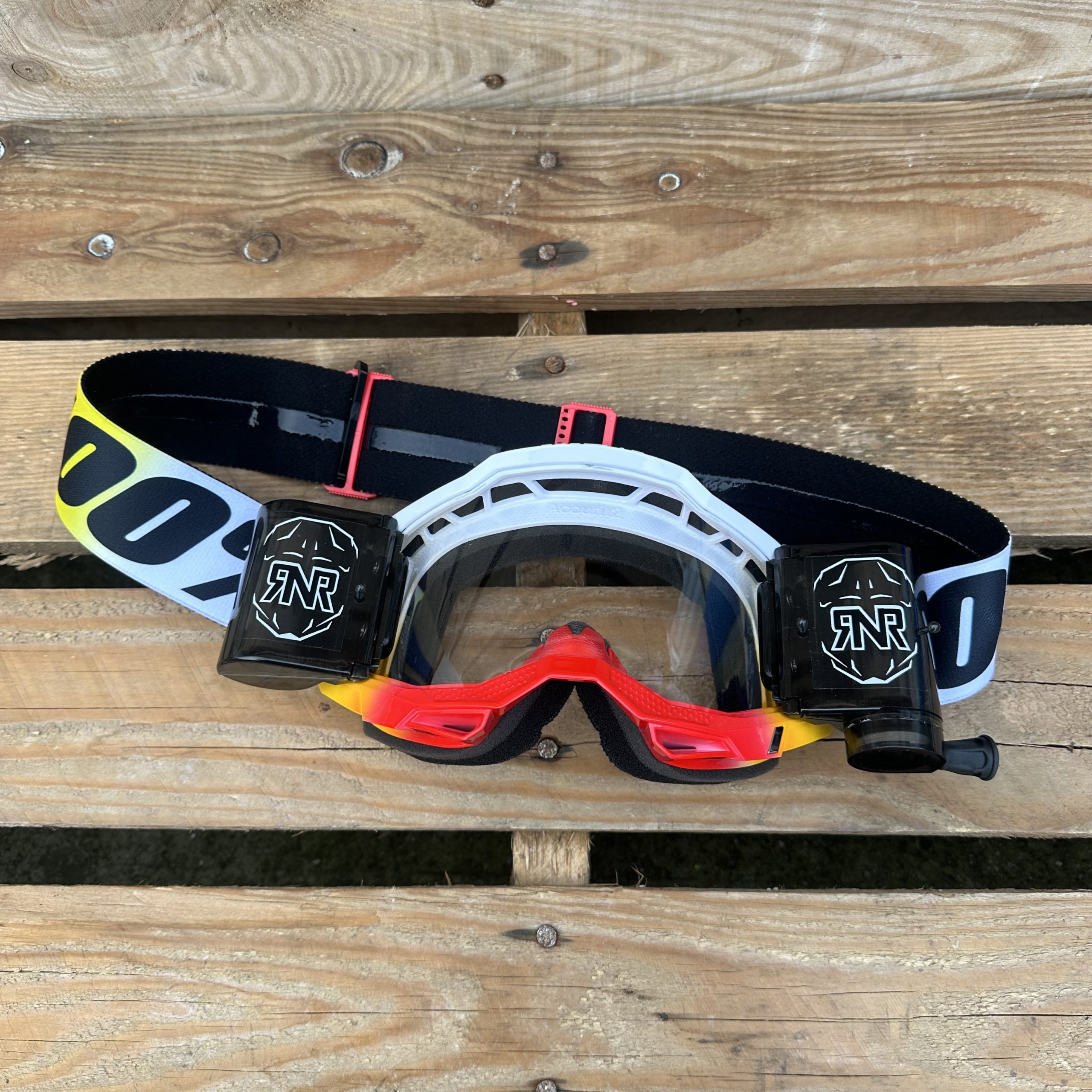 The latest 100% Accuri 2 motocross goggles fully loaded with RNR 48mm wvw roll-off system.
