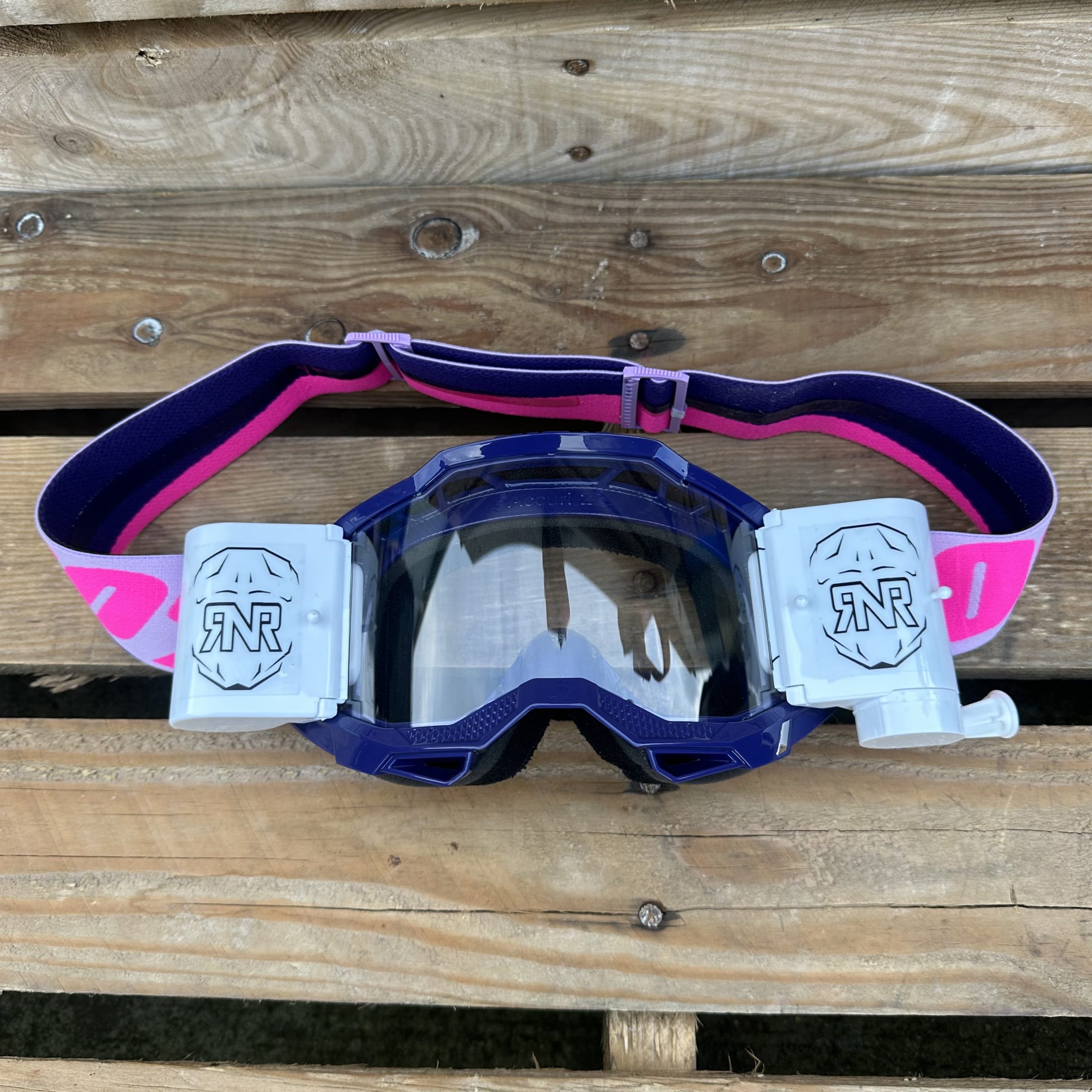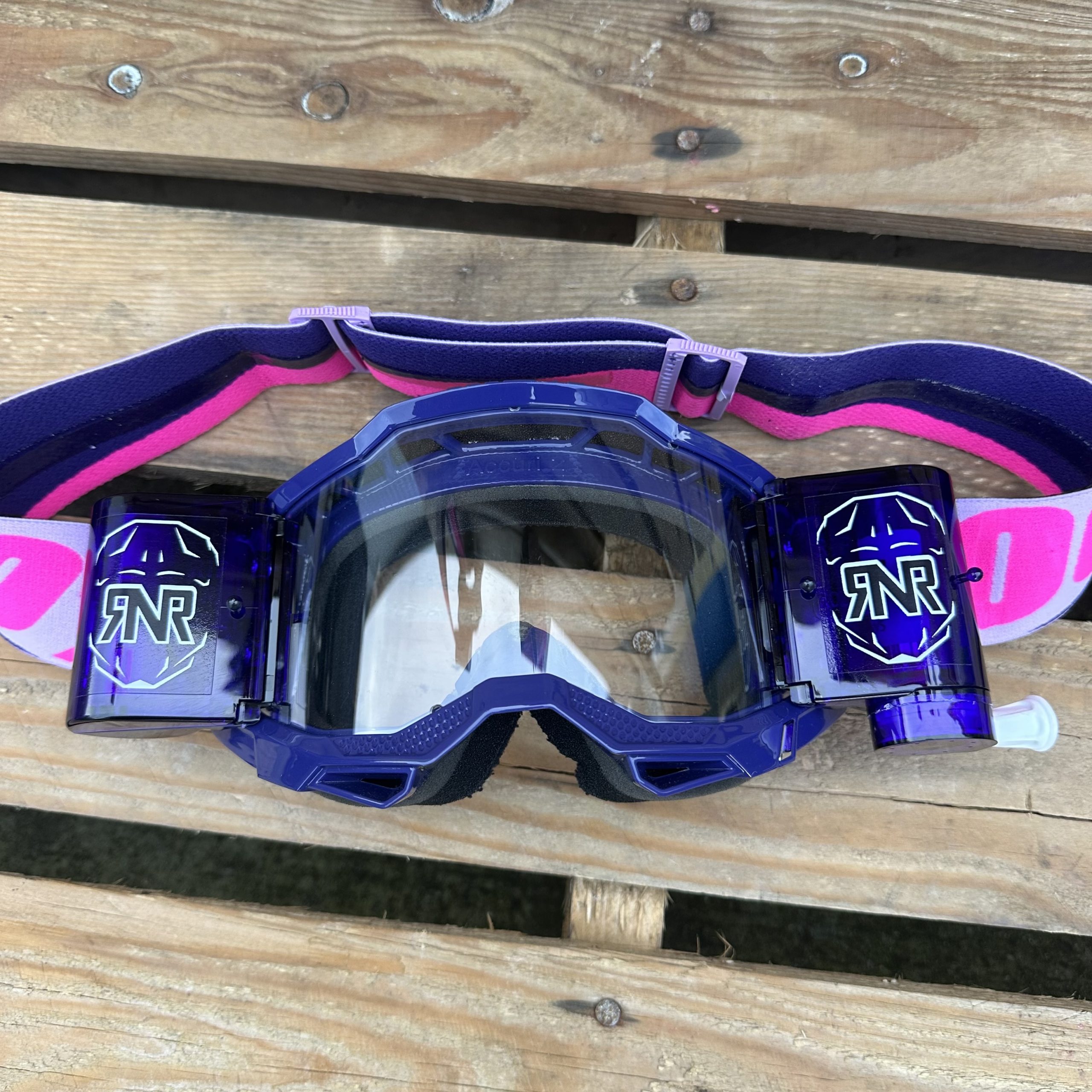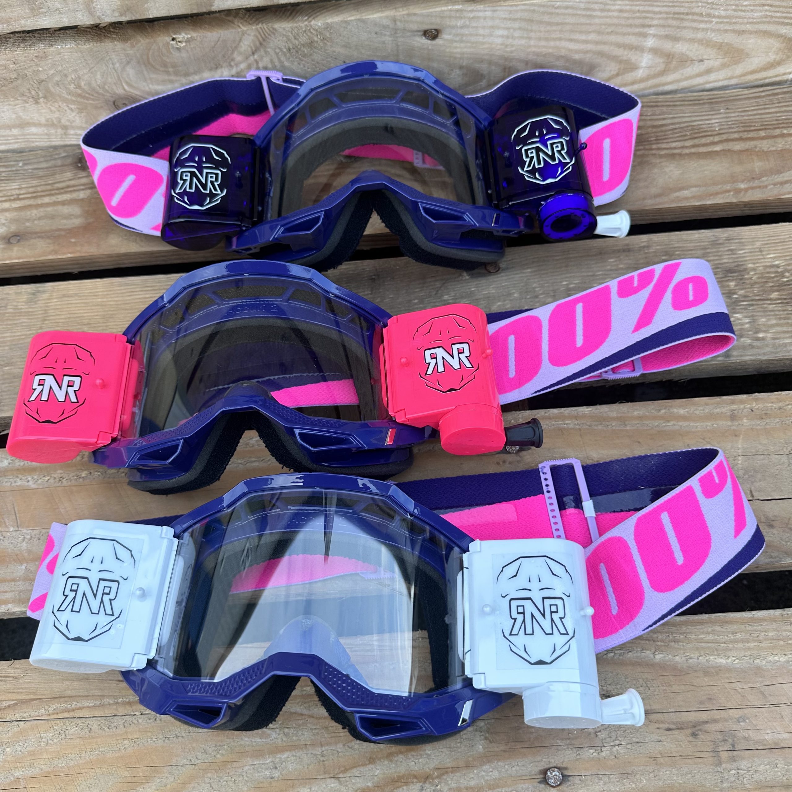The latest 100% Accuri 2 motocross goggles fully loaded with RNR 48mm wvw roll-off system.
