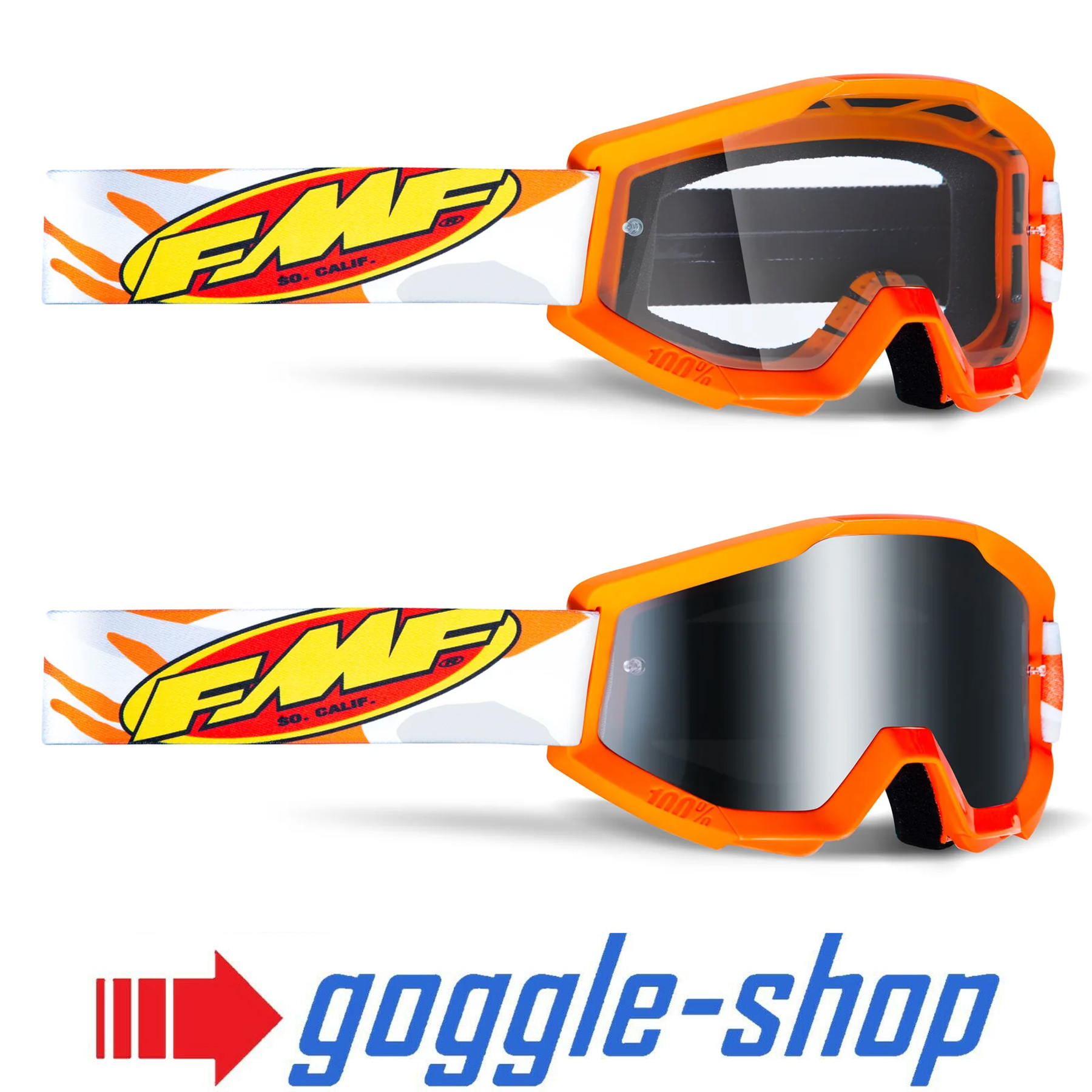 All adult FMF goggles share the same lens and tear-offs