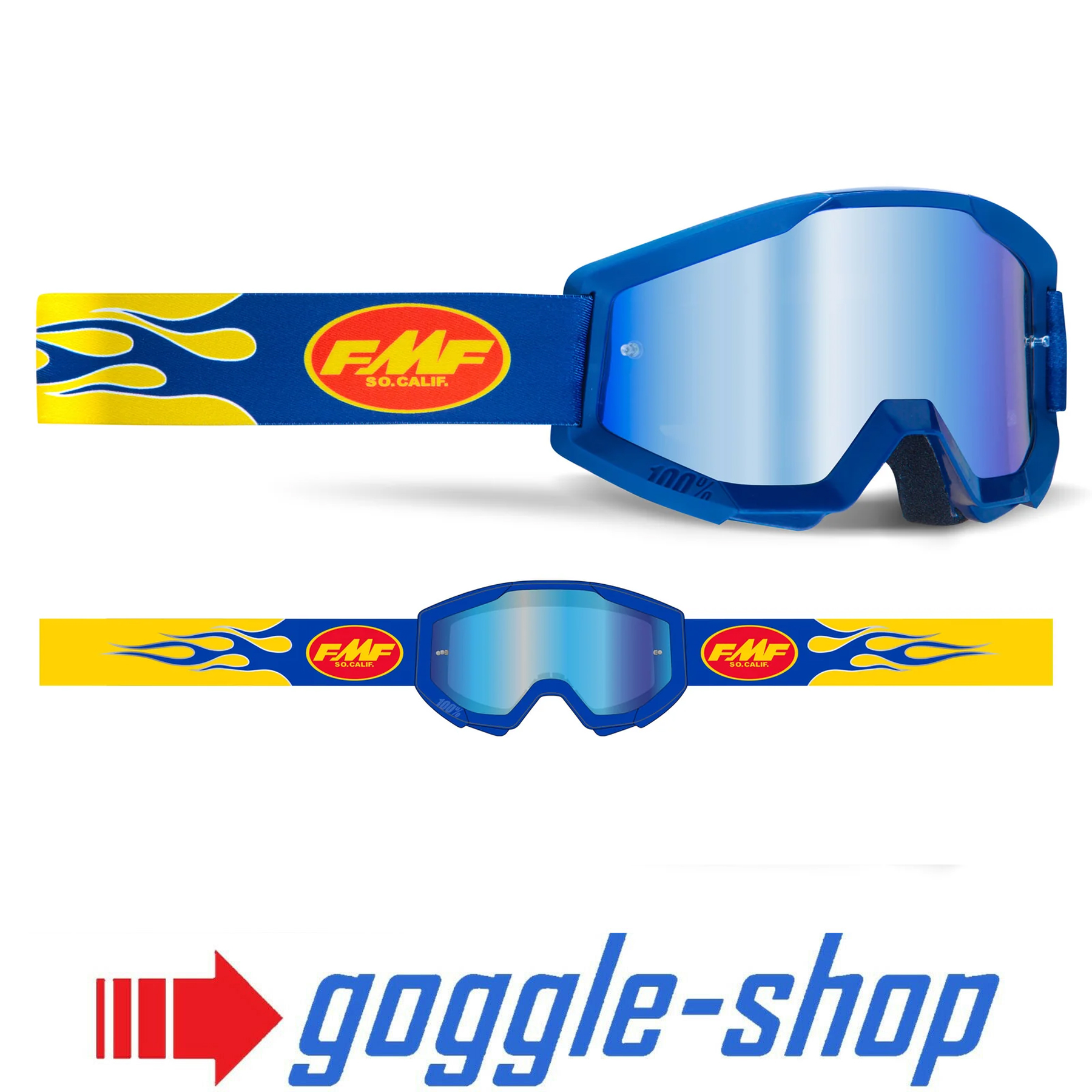 FMF 100% Powercore Motocross Goggles – FLAME NAVY